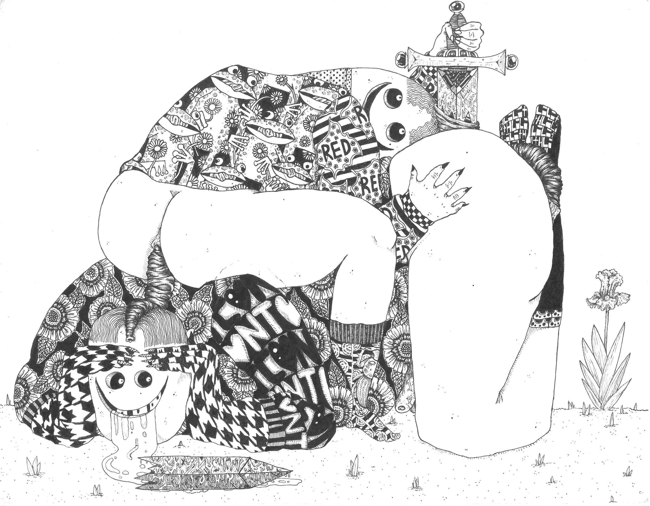 Dimensional Paint, Vinyl, Denim, Wood, Thread, Grommets,
